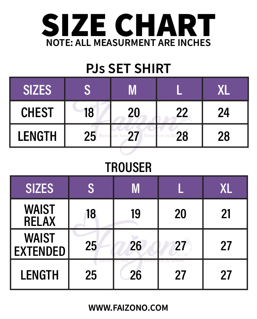 • PJs Size Guide