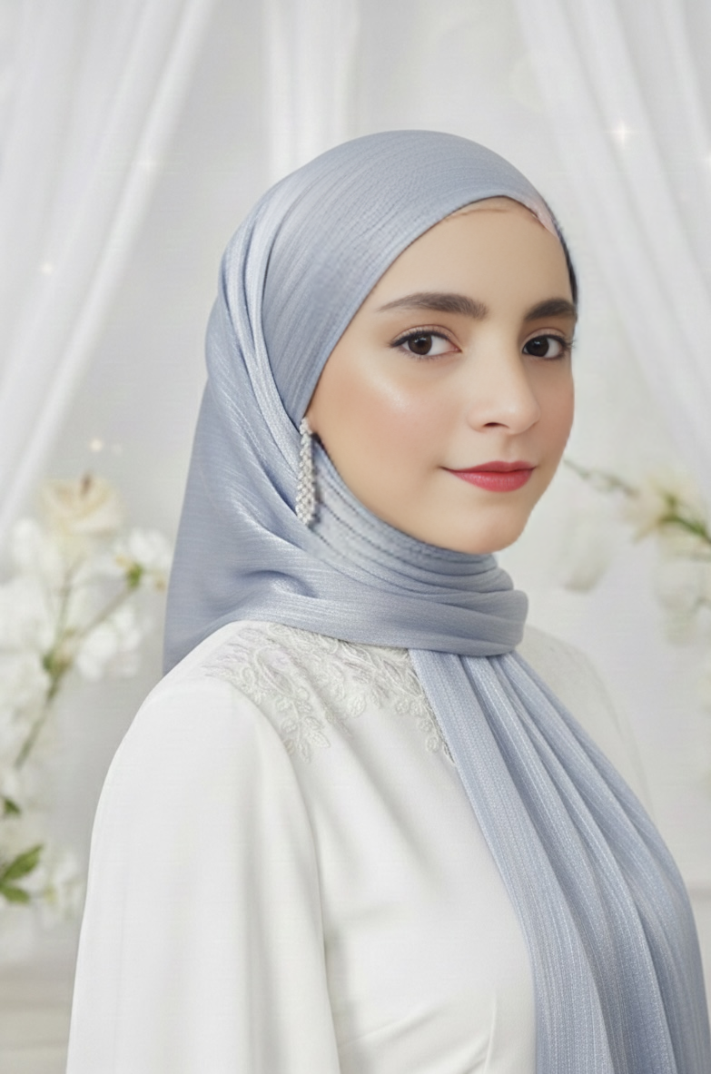 The Starlit Shimmer Organza Hijab is a statement in effortless elegance. Designed for the modern woman with a taste for subtle glamour, this lightweight piece shimmers with a soft, luminous finish. Its premium organza fabric drapes gracefully, catching the light with every movement. Whether you're attending a celebration or elevating your everyday look, this hijab adds a touch of sophistication to any ensemble. (46)