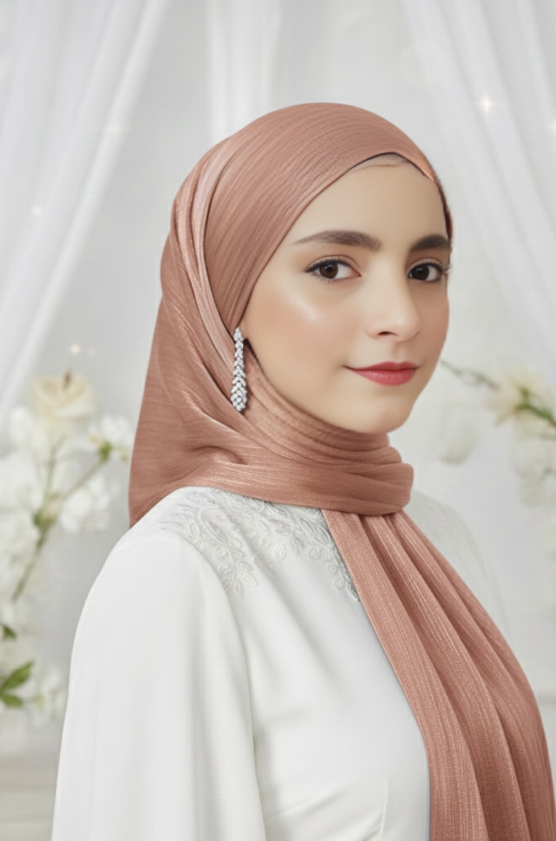 The Starlit Shimmer Organza Hijab is a statement in effortless elegance. Designed for the modern woman with a taste for subtle glamour, this lightweight piece shimmers with a soft, luminous finish. Its premium organza fabric drapes gracefully, catching the light with every movement. Whether you're attending a celebration or elevating your everyday look, this hijab adds a touch of sophistication to any ensemble. (46)